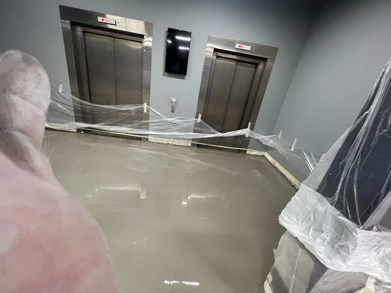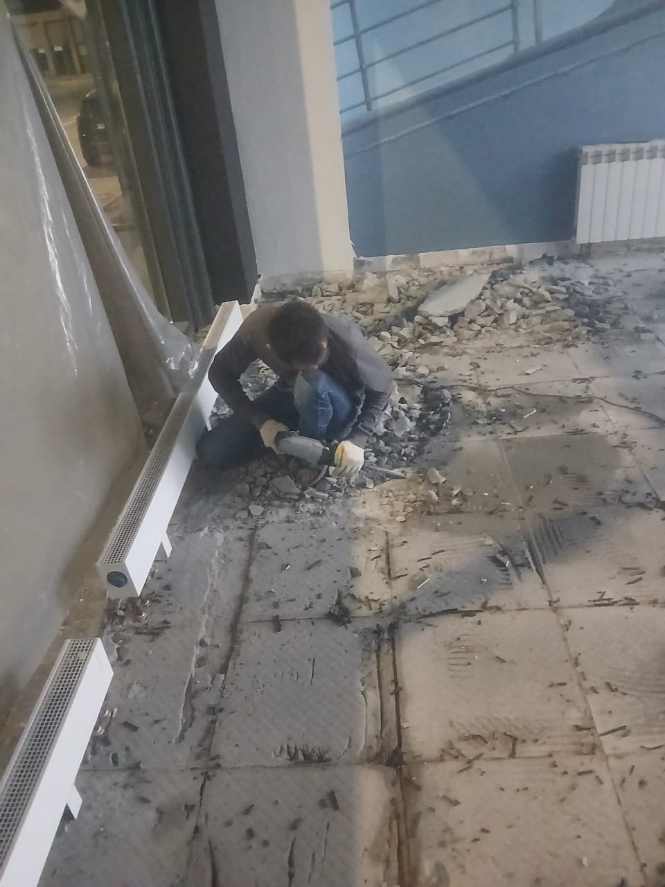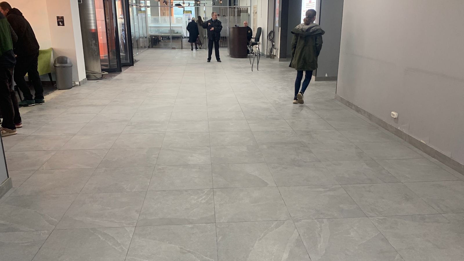 В начале 2025 года мы провели реконструкцию входной группы в бизнесс центре лада. Провели демонтаж керамогранита, демонтаж стажки и клея, прогрунтовали пол, залили самовыравнивающим составом, уложили новый керамогранит.