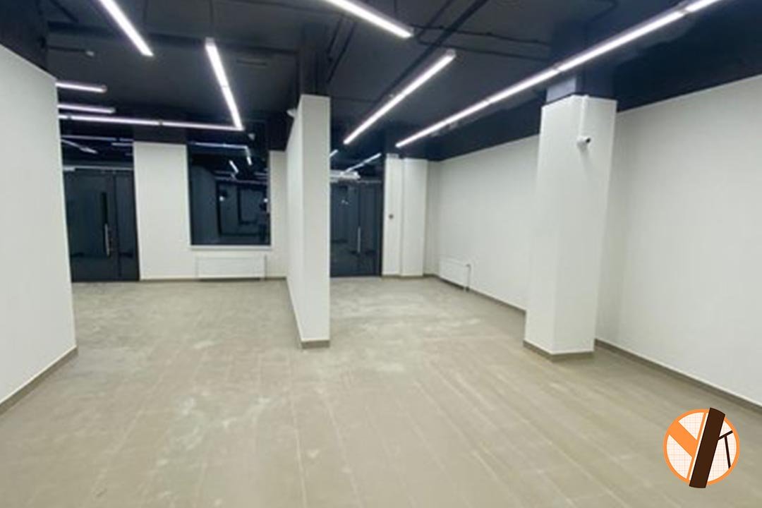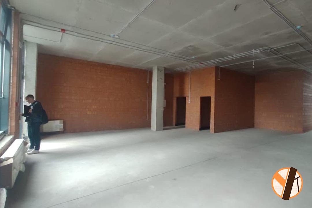 Зашли в пустое помещение, после сдачи строительства застройщиком, произвели демонтаж кирпичной перегородки, объединили два помещения в одно и сформировали большой торговый зал. Во втором помещении пол был ниже уровнем, чем в основном, поэтому произвели заливку полусухой стяжки. А дальше всё по стандарту: оклеили все стены гипсокартоном и возвели нужные перегородки. Шпаклевание стен, монтаж плитки, прокладка электрики — в среднем в магазине 25 рабочих групп — все работы в соответствии со всеми СНИПами и нормами, покраска потолка и стен.