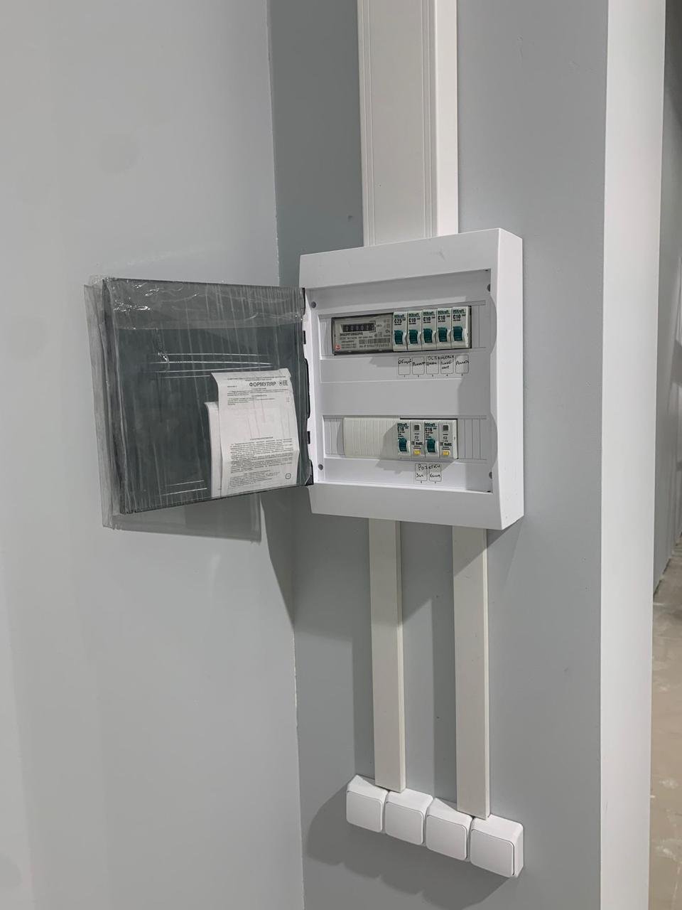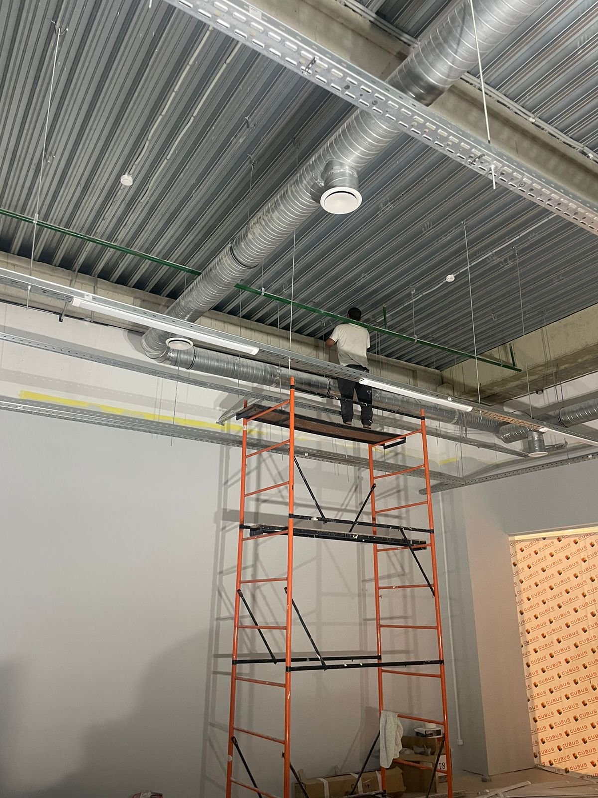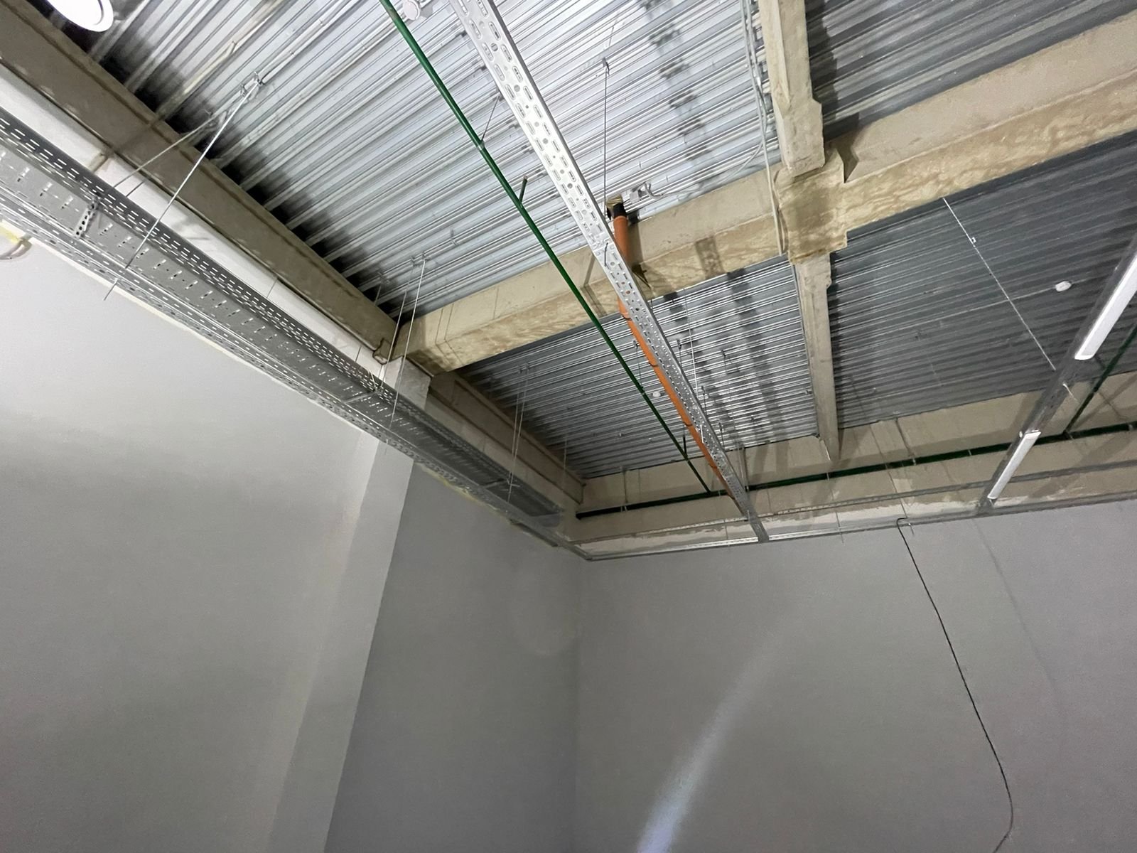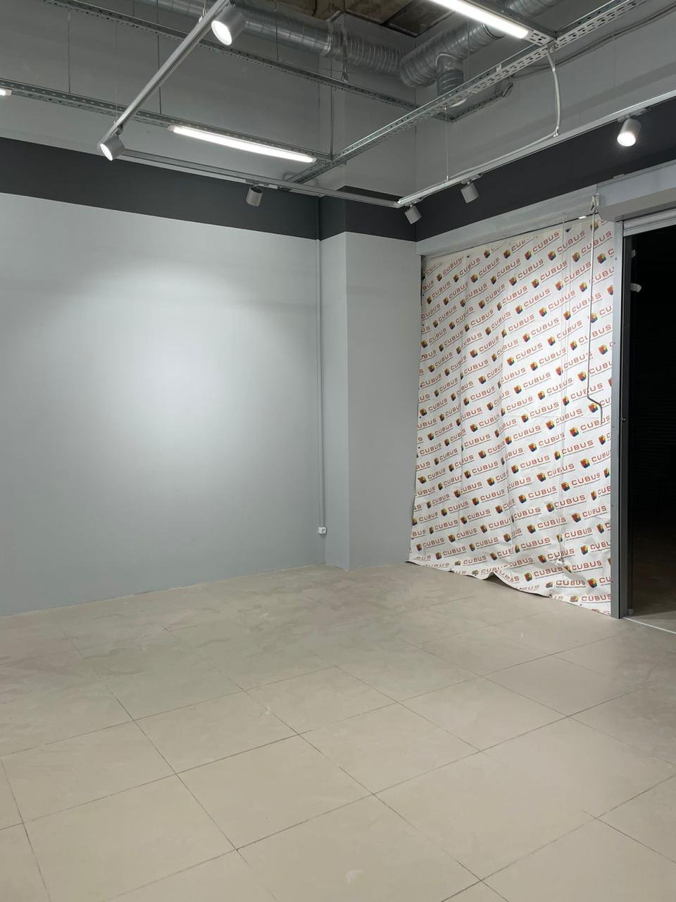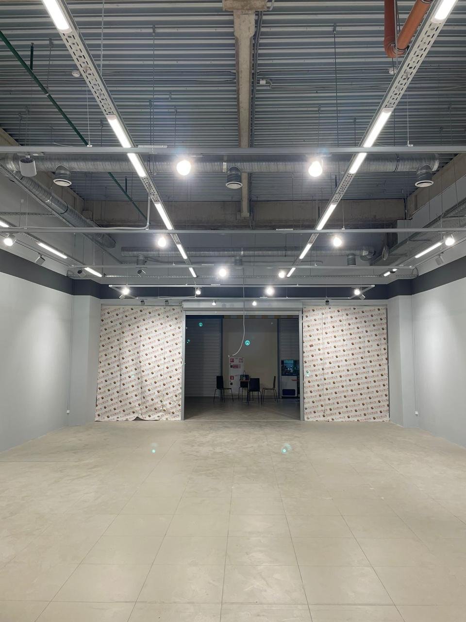 По техническому заданию было проведено новое освещение, кабельные сети, собран новый электрощит, проложены новые лотки по помещению. Был сделан ремонт стен: шпаклёвка, покраска, возведение некоторых перегородок и монтаж закладных внутрь стен для крепления торгового оборудования.